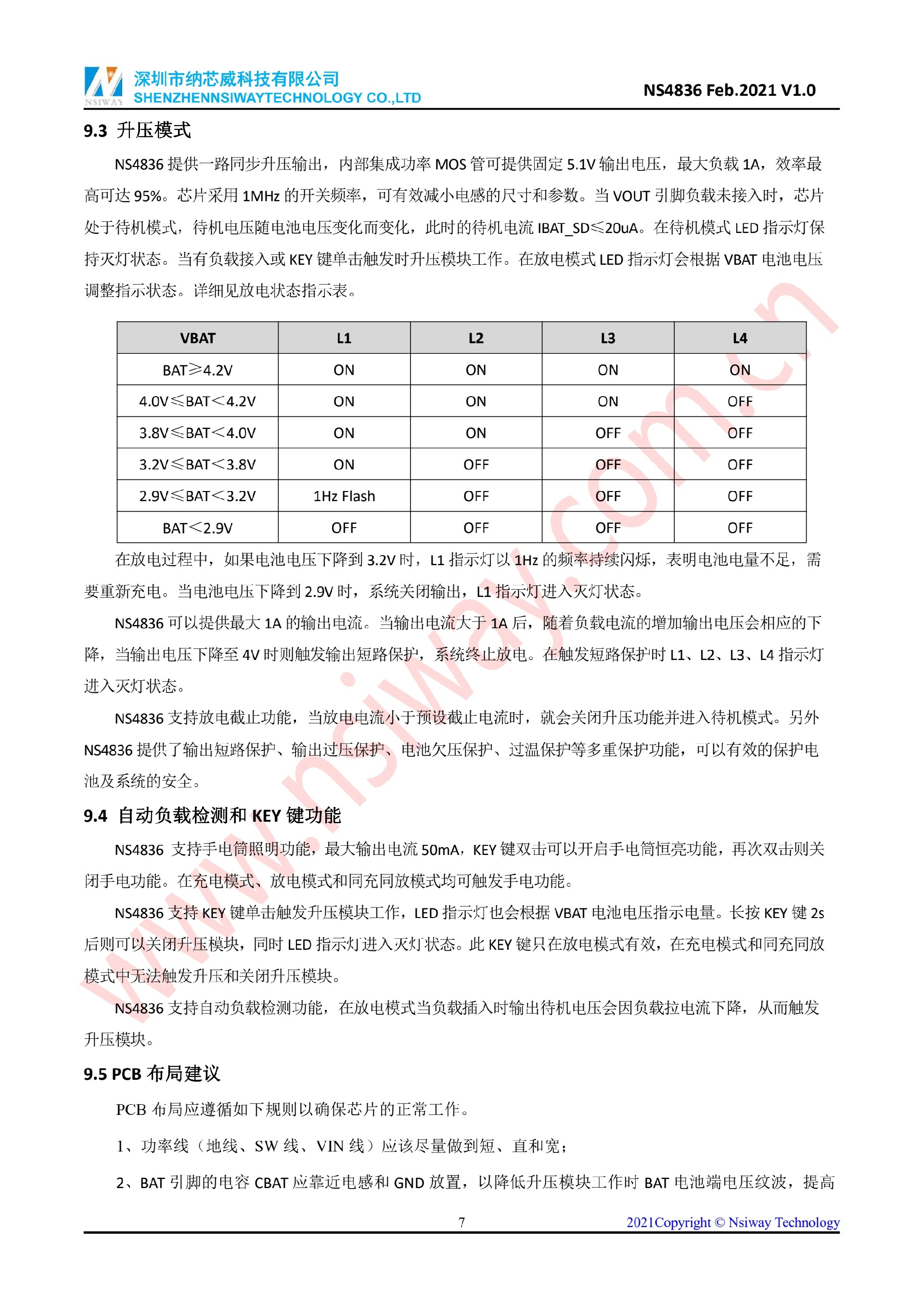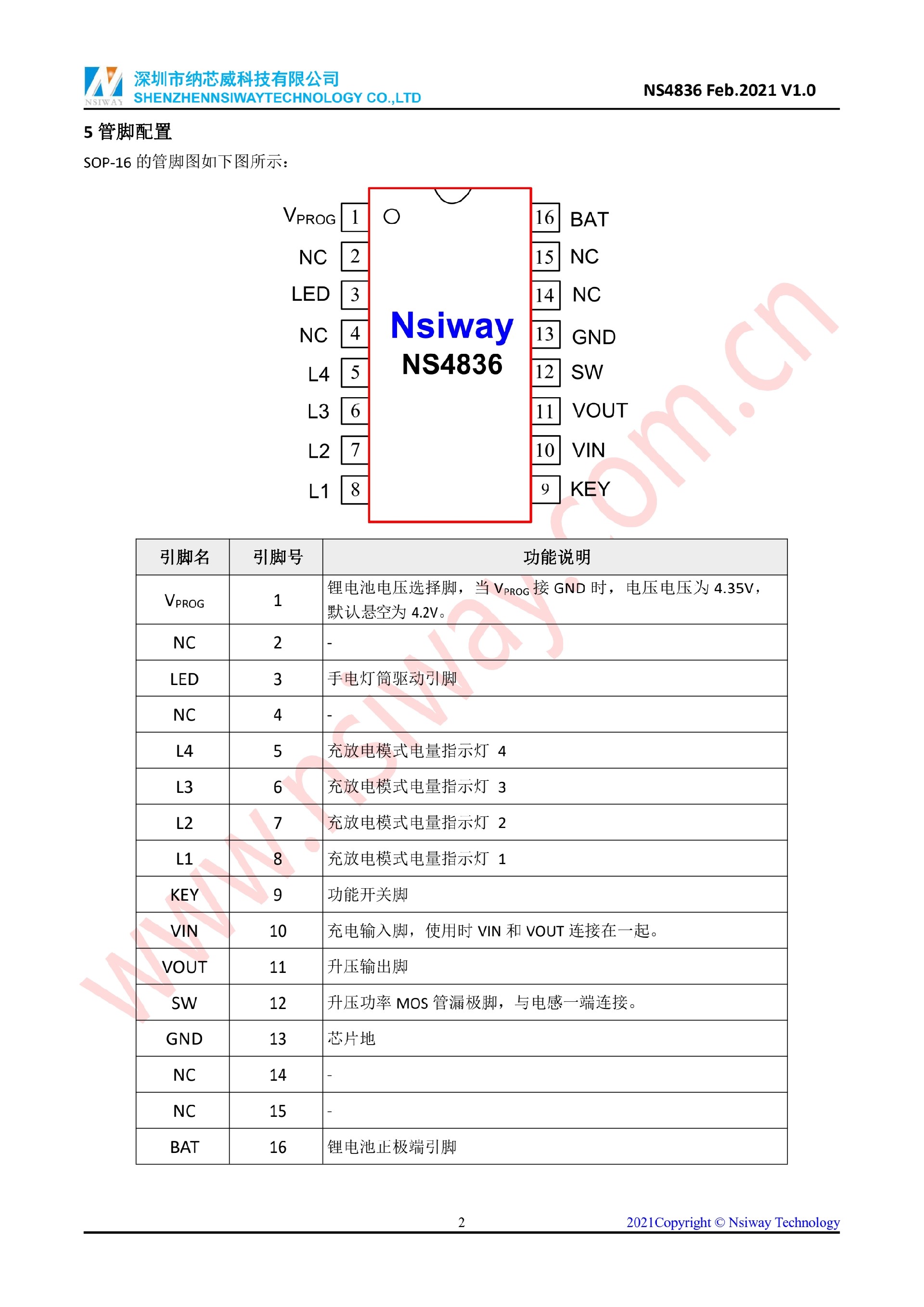 NS4836 1A 線性同步移動電源管理芯片-帶 KEY 鍵和手電筒功能