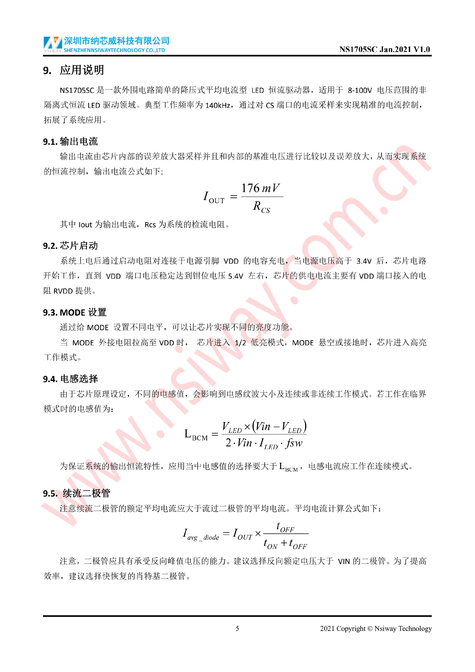 NS1705SC 外置 MOS 管開關降壓型 LED 恒流驅動器